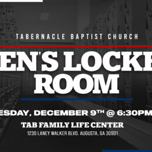 December Men’s Locker Room 09 Dec 6:30 pm Tabernacle Baptist Church Family Life Center1230 Laney Walker Blvd, Augusta, GA 30901