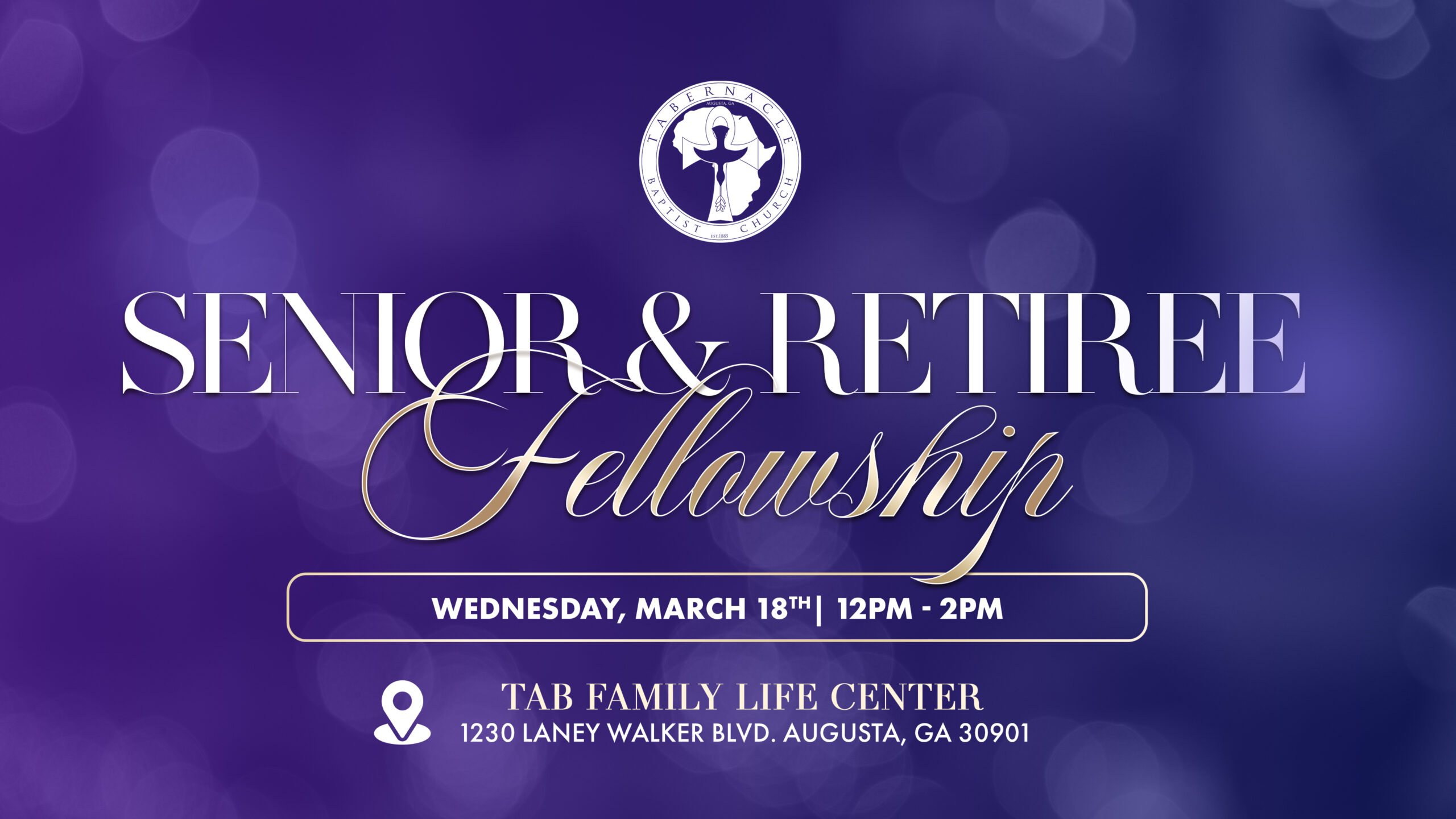 March Senior & Retiree Fellowship + Add to Google Calendar + iCal / Outlook export Date Feb 11 2026 Expired! Time 12:00 pm - 2:00 pm More Info REGISTER HERE Location Tabernacle Baptist Church Family Life Center 1230 Laney Walker Blvd, Augusta, GA 30901 REGISTER HERE Share this event