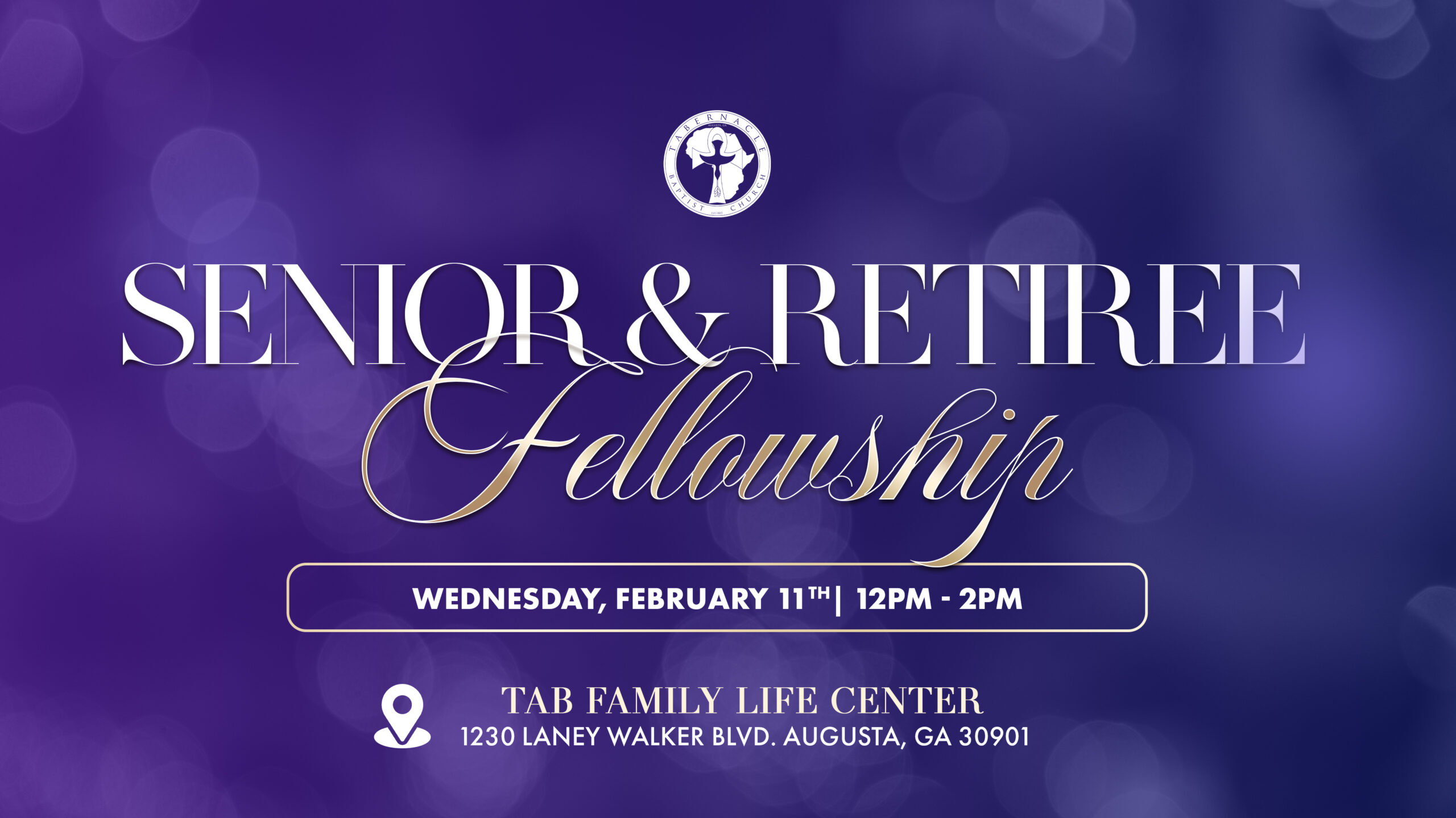 February Senior & Retiree Fellowship + Add to Google Calendar + iCal / Outlook export Date Feb 11 2026 Expired! Time 12:00 pm - 2:00 pm More Info REGISTER HERE Location Tabernacle Baptist Church Family Life Center 1230 Laney Walker Blvd, Augusta, GA 30901 REGISTER HERE Share this event